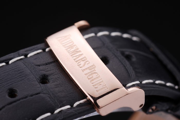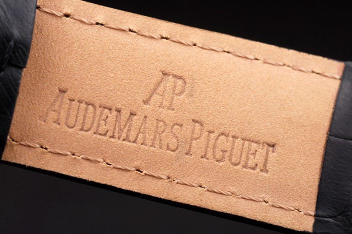 Bracelet: Heat präglade Audemars Piguet svart krokodil läderrem med Audemars Piguet graverad rostfritt stål utfällbar i clasp