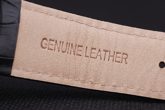 Bracelet: Svart krokodil läderrem med värme präglade Audemars Piguet namn och logotyp och en Audemars Piguet inskriven 18k steg-guldpläterade flip-over krok clasp