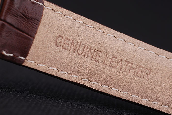 Bracelet: Brun krokodil läderrem med vit tråd sömmar och värme präglad Audemars Piguet namn och logotyp och en Audemars Piguet inskriven 18k steg-guldpläterade flip-over krok clasp