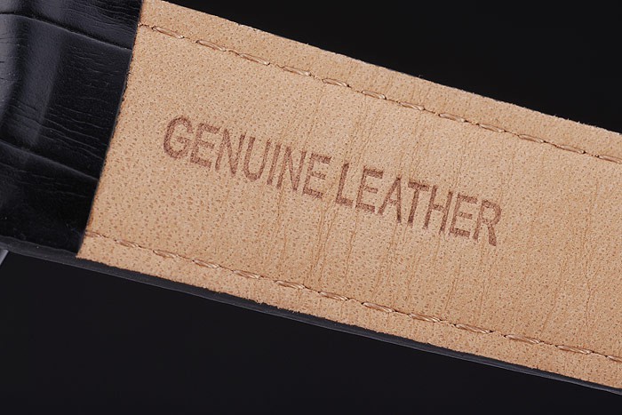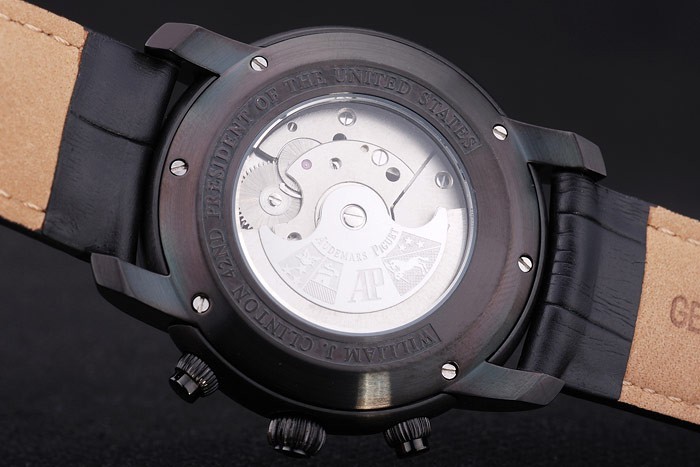Bracelet rostfritt stål: Svart krokodilläderband med vit tråd sömmar och värme präglad Audemars Piguet namn och logotyp och en Audemars Piguet inskriven jon-klädd flip-over krok clasp