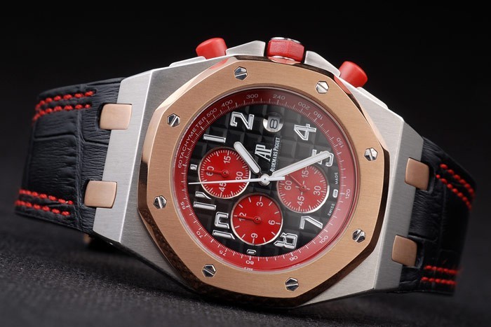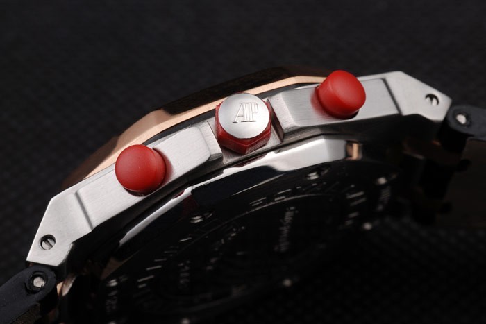 Crown: Röd gummi hexagonal krona med initialerna AP på rostfritt stål stud plus en röd rund gummi krona på båda sidor om it