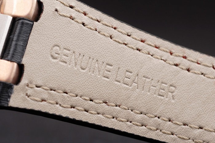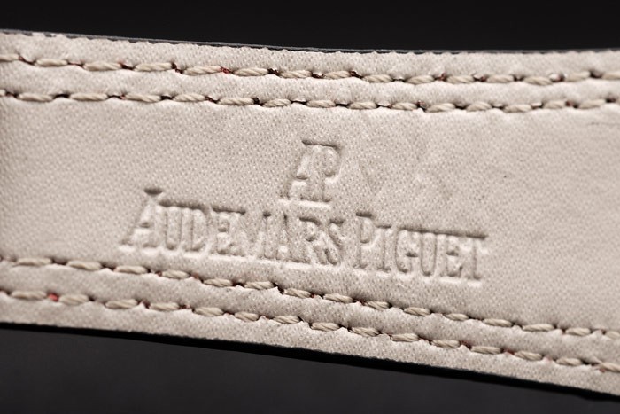 Bracelet: Heat präglade Audemars Piguet svart krokodil läderrem och Audemars Piguet graverad rosen guldpläterad fold-in clasp