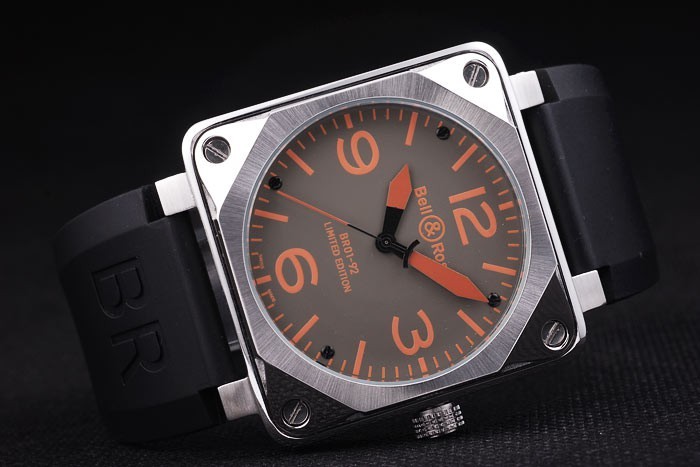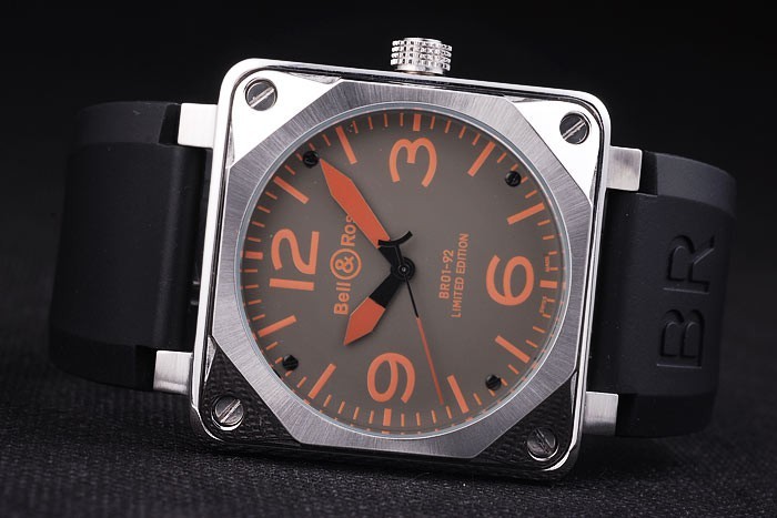 Tillbaka: borstat rostfritt stål skruvas ned tillbaka med Bell & Ross inscriptions