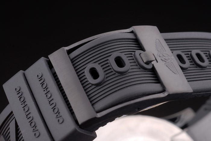 Crown: Ion-plated rostfritt stål cutwork krona med Breitling logotyp och en liten tryckknapp krona på vardera sidan om it