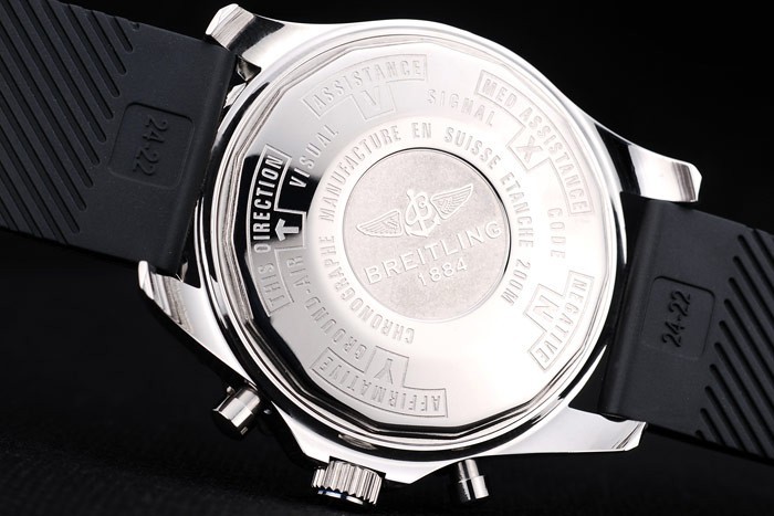 Denna klocka har AR glas. Ansiktet färg visas olika färger beroende på hur ljuset faller på itBack: Polerat rostfritt stål snap-in tillbaka med Breitling engravings