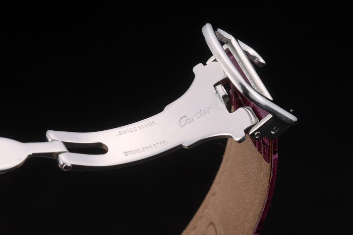 Bracelet: Cartier värme präglat lila krokodil läderrem med polerat rostfritt stål utfällbar i spänne