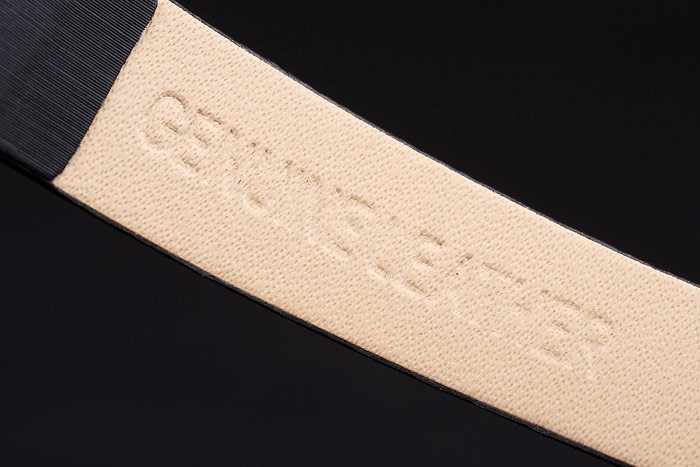 Bracelet: Heat präglade Cartier svart texturerad läderrem med Cartier inskrivet polerat rostfritt stål utfällbara flip clasp