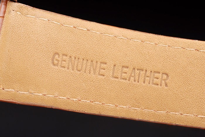 Bracelet: Heat präglade Cartier stämplad ljusbrun krokodil läderrem med borstat rostfritt stål dold clasp
