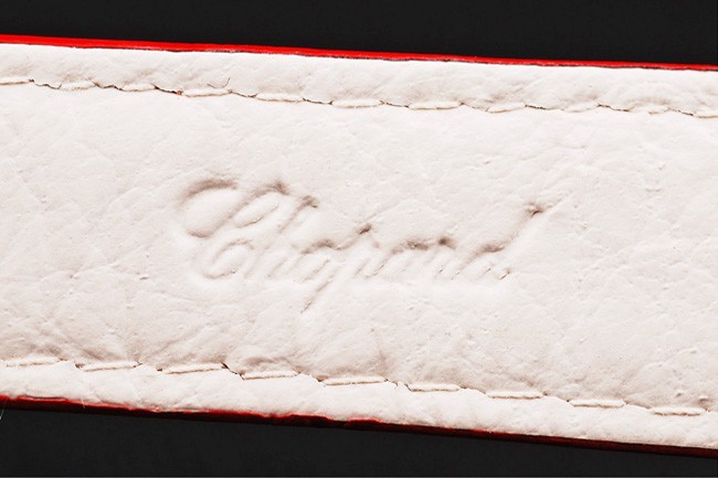 Klassiskt elegant utan att vara instängt, fastspänd denna röda Chopard replika klocka med flytande faux diamanter är perfectBack: Tryck in rostfritt stål tillbaka med Chopard engravings