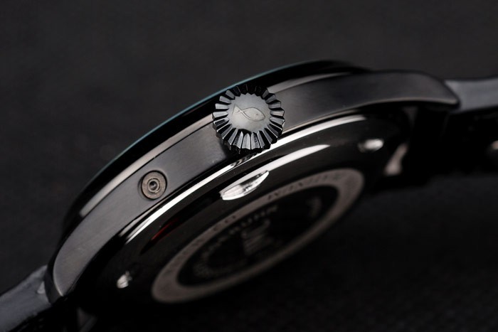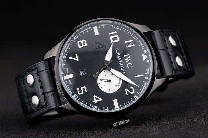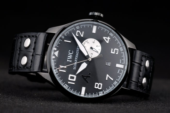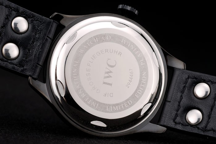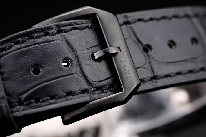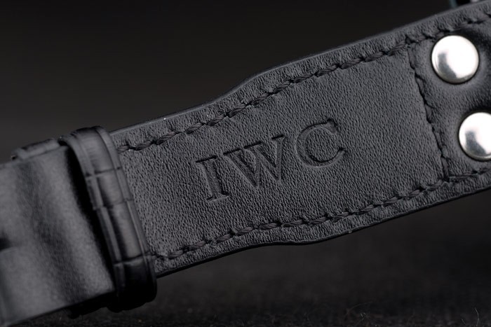 Bracelet rostfritt stål: IWC värme präglat svart krokodil läderrem med IWC graverad jon-plated rostfritt stål hak- clasp