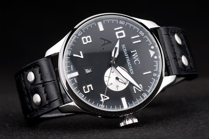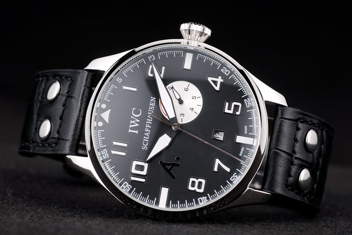 Bracelet stål: IWC värme präglat svart krokodil läderrem med IWC graverad borstat rostfritt stål krok-spänne clasp