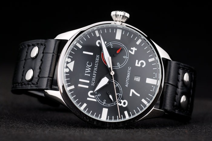 Bracelet stål: IWC värme präglat svart krokodil läderrem med IWC graverad borstat rostfritt stål krok-spänne clasp