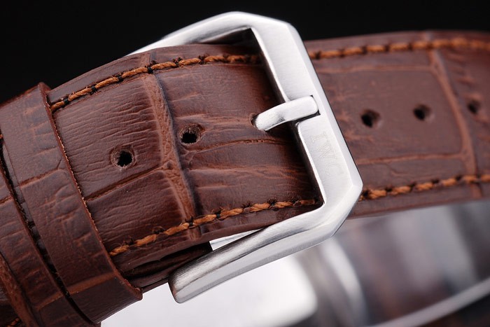 Bracelet: IWC Schaffhausen värme präglat brunt krokodil läderrem med IWC inskrivet rostfritt stål krok-spänne clasp