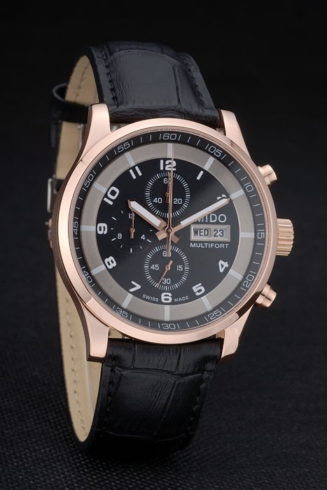 Mido Multi Rose Gold Bezel Stainless Steel Black Croco Läderarmband Black Dial 80.279