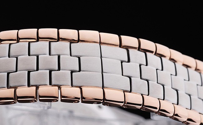 Bracelet: Rose-guldpläterad och borstat rostfritt stål länk armband med dold clasp
