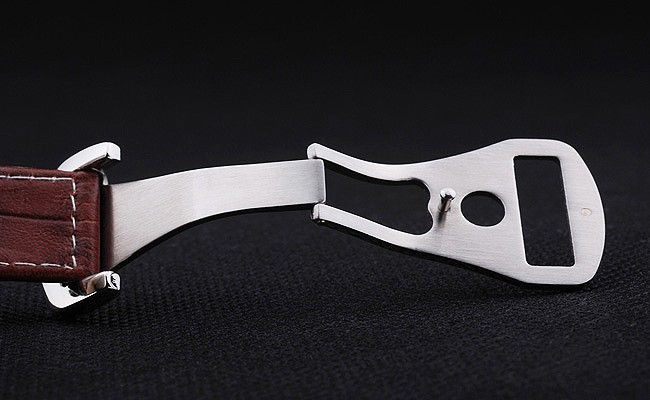 Bracelet: Brun krokodil läderrem med vita sömmar och Omega logotyp ingraverad rostfritt stål krok-spänne clasp