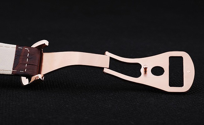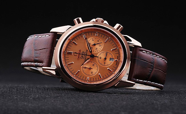 Bracelet: Brun krokodil läderrem med vita sömmar och Omega logotyp graverad steg guld hook-spänne clasp