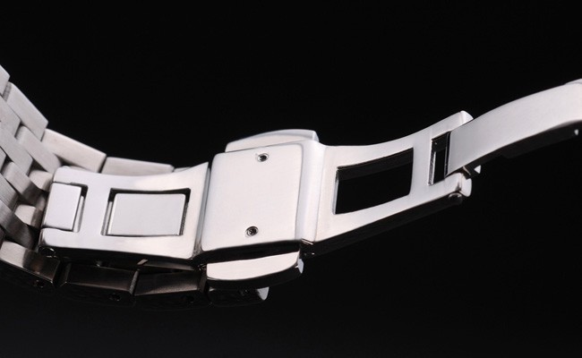 Crown: polerat rostfritt stål cutwork krona med Omega logotyp plus ytterligare två kronor, en på vardera sidan om it
