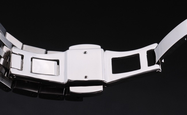 Crown: Polerat rostfritt stål cutwork krona med Omega logotyp plus ytterligare två kronor, en på vardera sidan om it