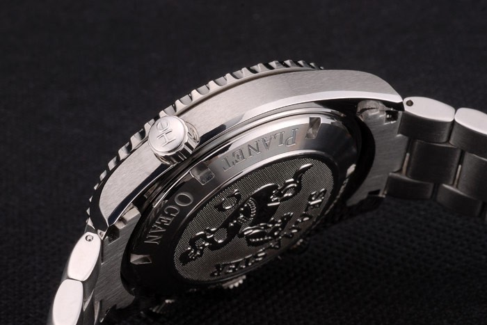Tillbaka: Polerat rostfritt stål snap-in tillbaka med Omega logotyp och Seamaster Planet Ocean engravings