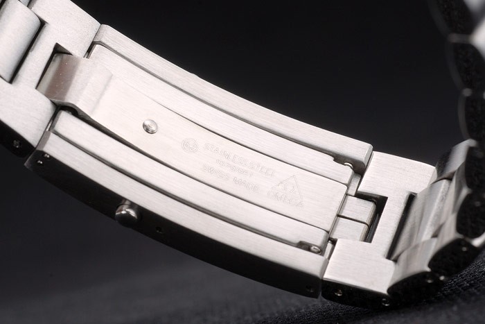 Bezel: Svart emalj polerat rostfritt stål enkelriktad cutwork bezel med index och arabisk siffra sekunder marker