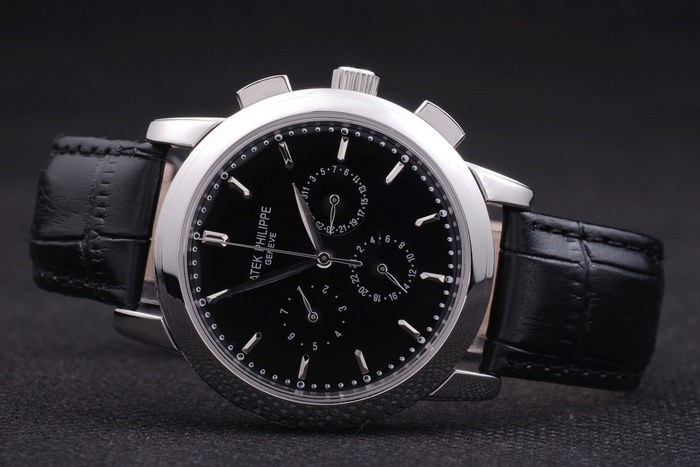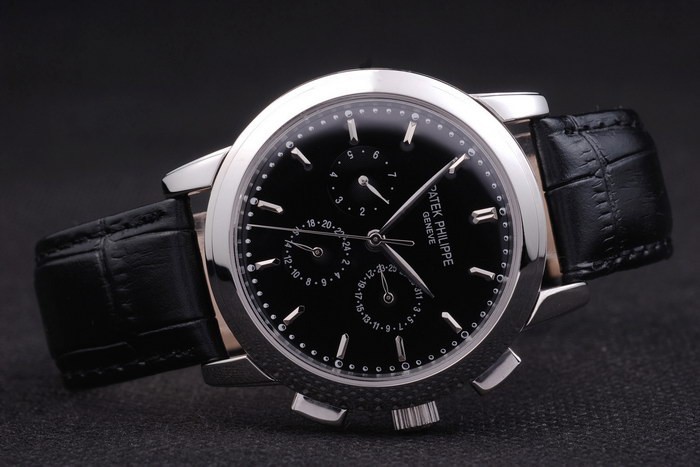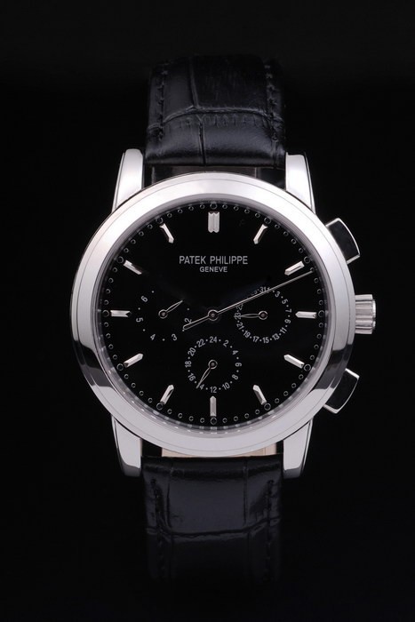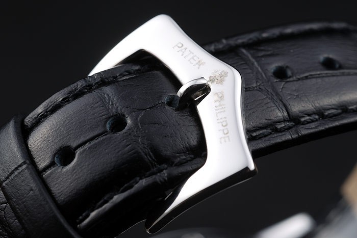 Bracelet rostfritt stål: Svart läderrem med Patek Philippe stämpel och en rostfri gånger i clasp