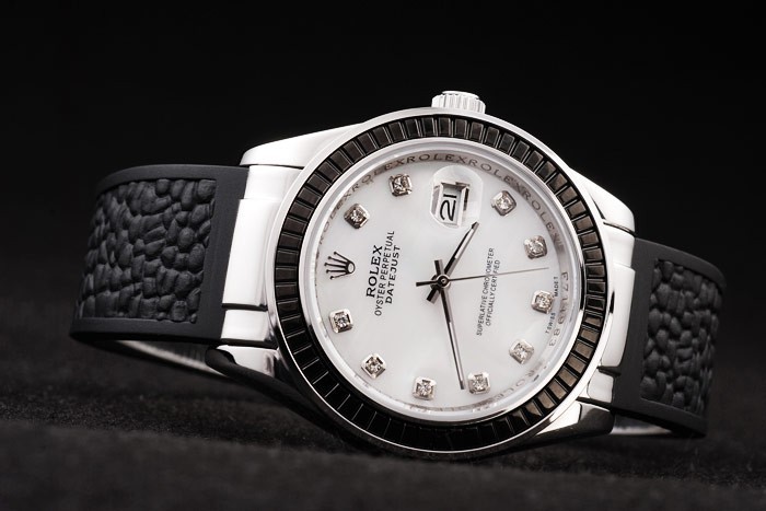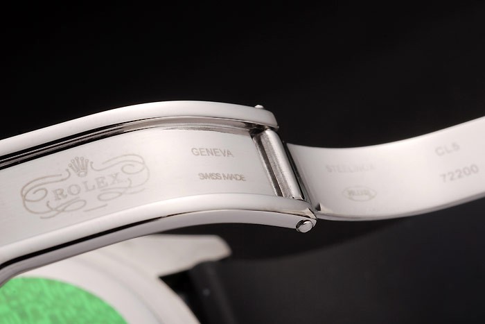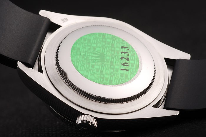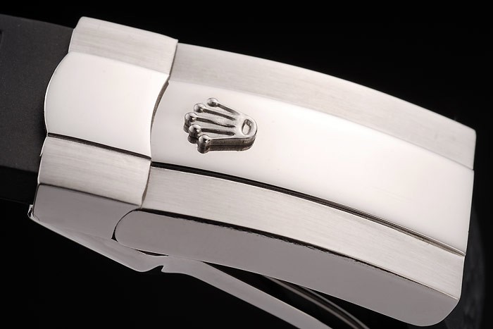 Bracelet rostfritt stål: Designad svart gummiband med Rolex graverade fold-i lås med Rolex logotyp ristade på top
