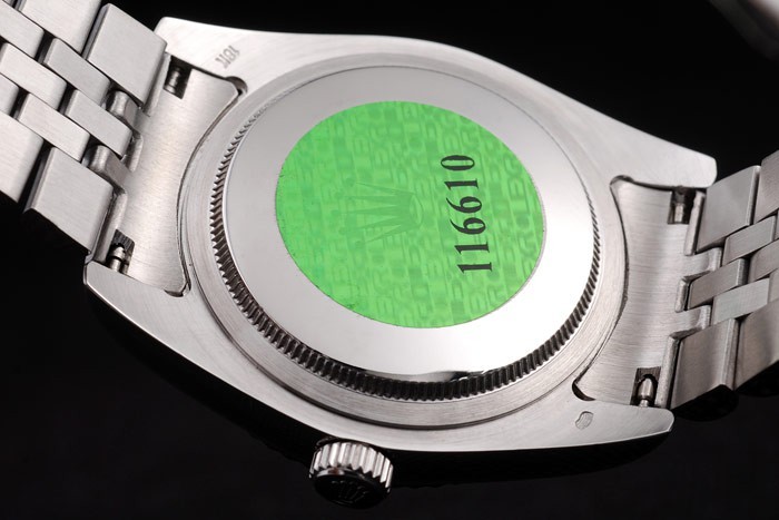 Tillbaka: Rostfritt stål push-in målet med grön Rolex logo stamp