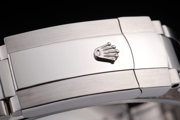 Bracelet: borstat rostfritt stål länk armband med Rolex graverade fold-in utbyggnad lås visar Rolex logo