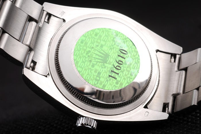 Tillbaka: Rostfritt stål push-in målet med grön Rolex logo stamp