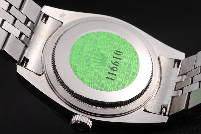 Tillbaka: Rostfritt stål push-in målet med grön Rolex logo stamp