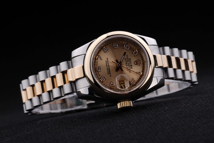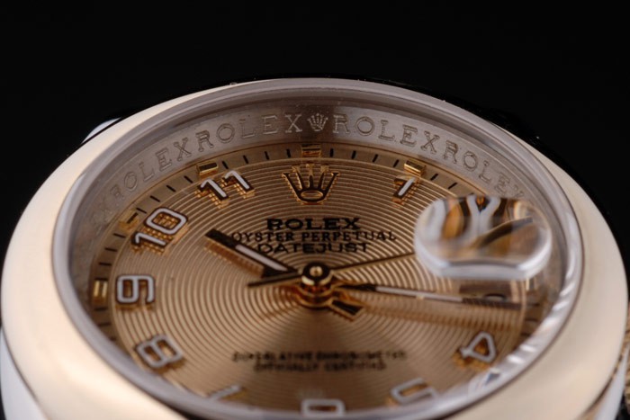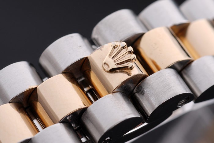 Crown: 18k gult guld stål cutwork krona med Rolex logo
