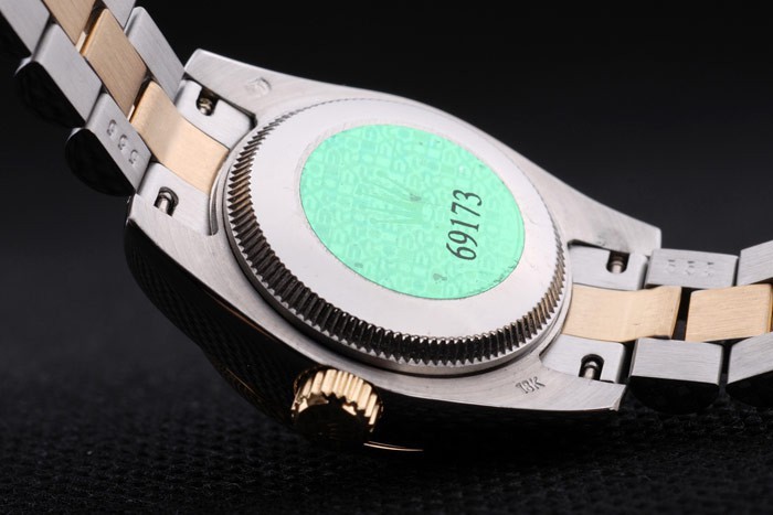 Tillbaka: Rostfritt stål push-in målet med grön Rolex logo stamp