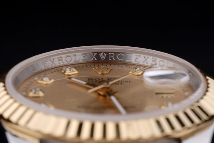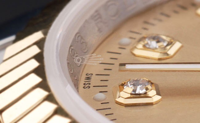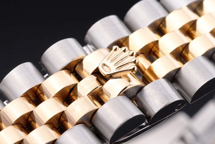 Crown: 18k gult guld stål cutwork krona med Rolex logo