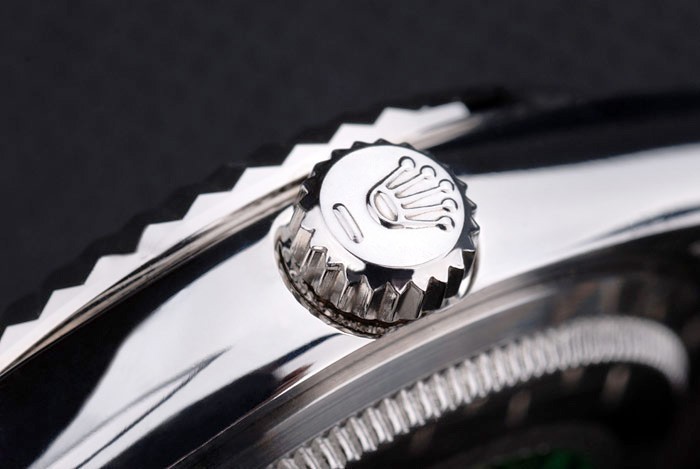 Tillbaka: Rostfritt stål push-in målet med grön Rolex logo stamp