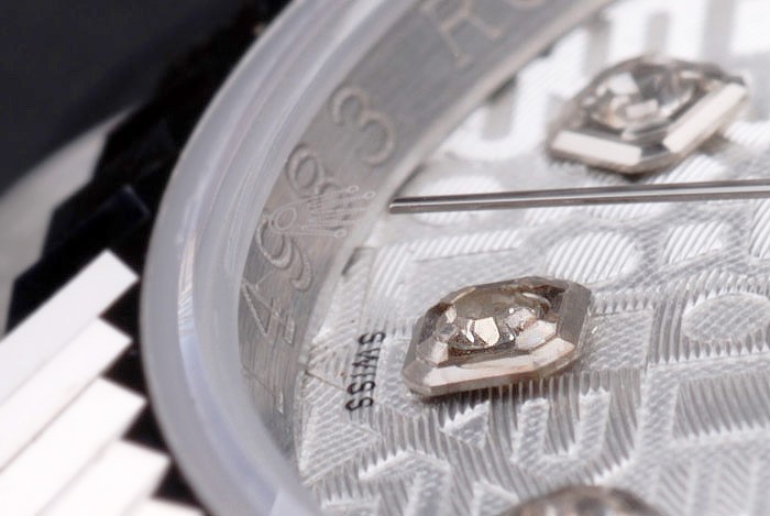 Crown: Polerat cutwork rostfritt stål krona med Rolex logo