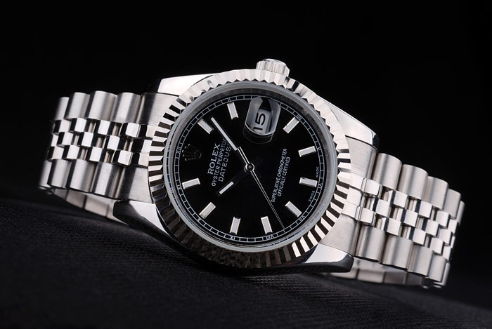 Bracelet: Borstad och polerat rostfritt stål armband med Rolex gravyr dold spänne visar Rolex logo