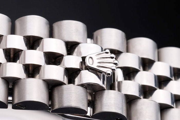 Crown: Polerat cutwork rostfritt stål krona med Rolex logo