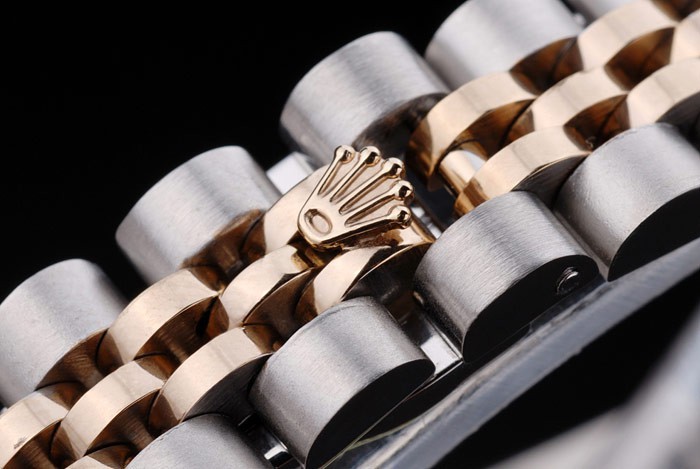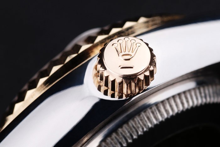 Crown: 18k gult guld stål cutwork krona med Rolex logo