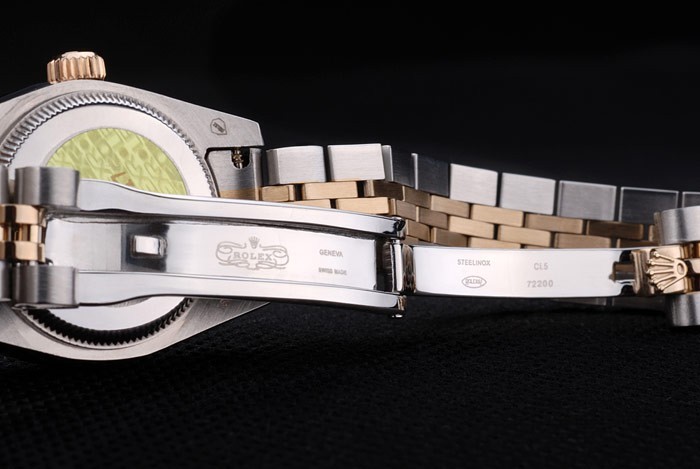 Bracelet: Två tonad länk armband i borstat rostfritt stål och 18k gult guld stål med Rolex gravyr dold spänne visar Rolex logo