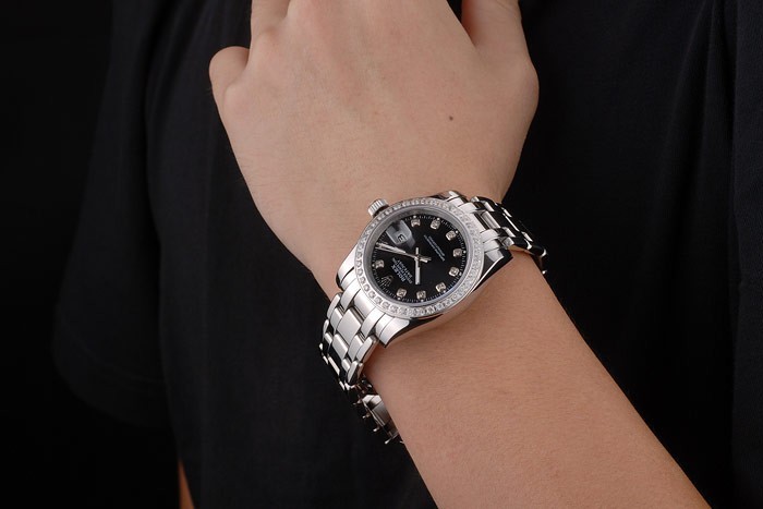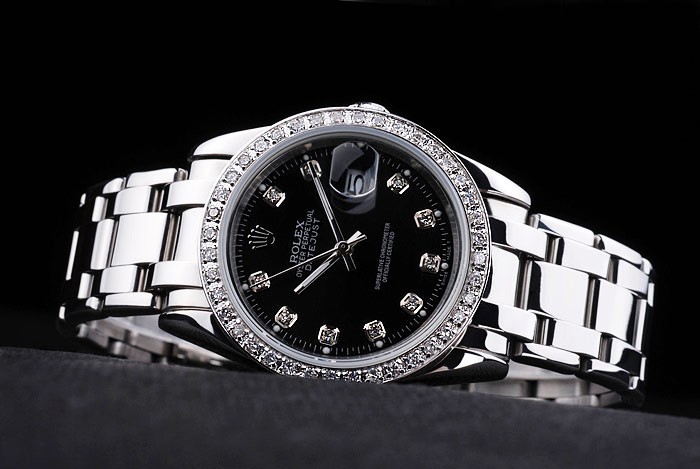 Bracelet: Polerat rostfritt stål infall länk armband med Rolex gravyr vika i lås visar Rolex logo