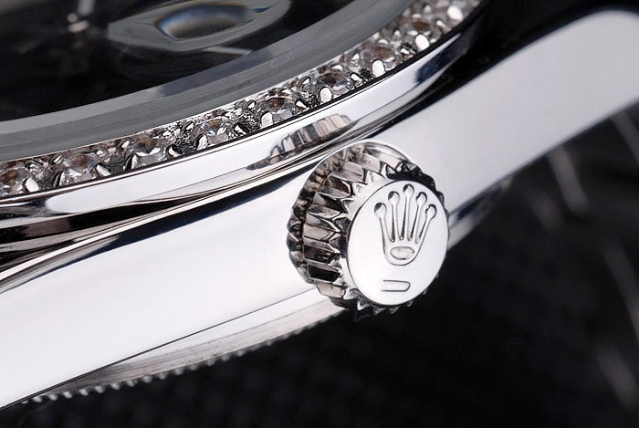 Crown: Polerat cutwork rostfritt stål krona med Rolex logo