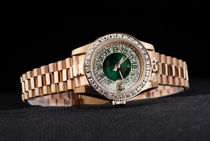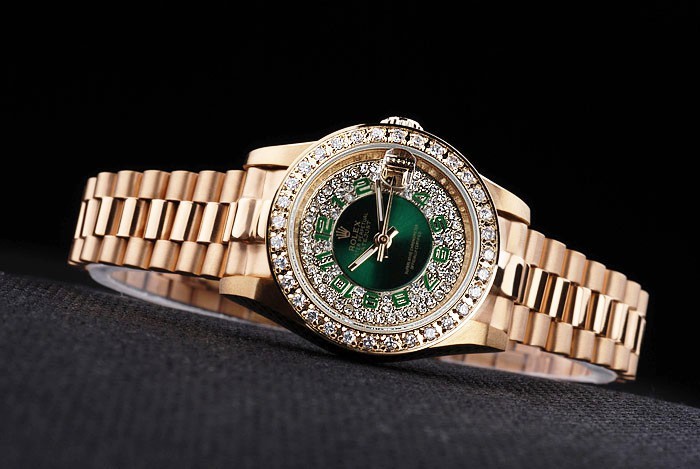 Tillbaka: 18k gult guld guldpläterade rostfritt stål push-in målet med grön Rolex logo stamp