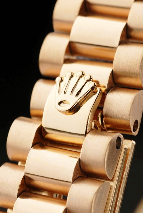 Crown: 18k gult guld stål cutwork krona med rolex logo