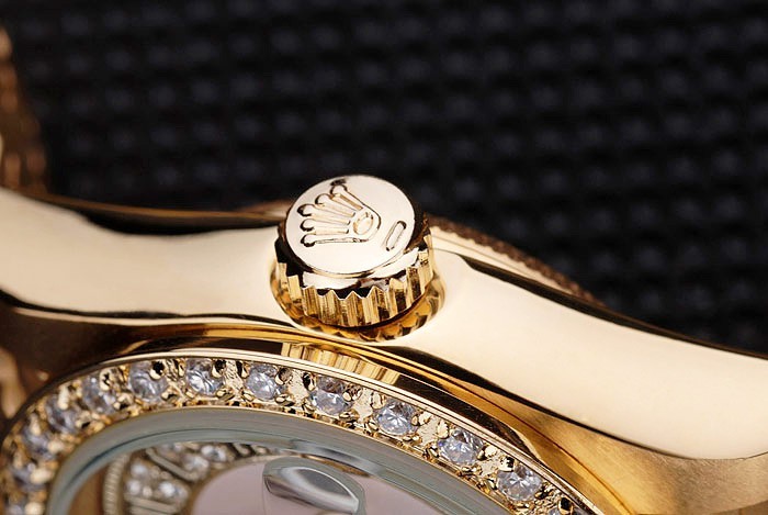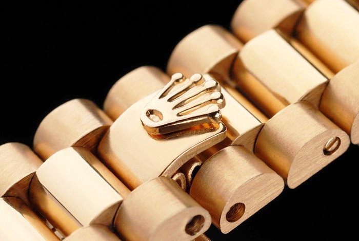 Crown: 18k gult guld stål cutwork krona med rolex logo