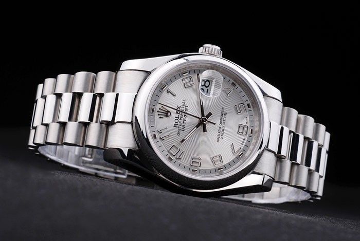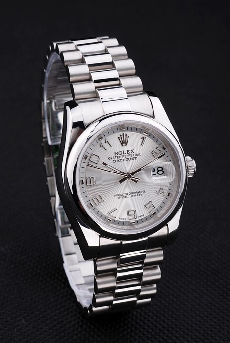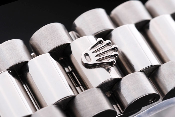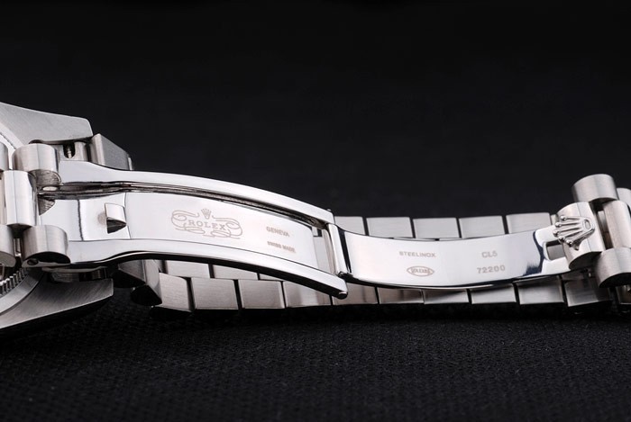 Bracelet: Borstad och polerat rostfritt stål armband med Rolex gravyr dold spänne visar Rolex logo