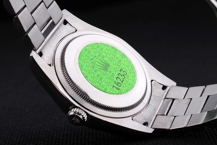 Tillbaka: Rostfritt stål push-in målet med grön Rolex logo stamp