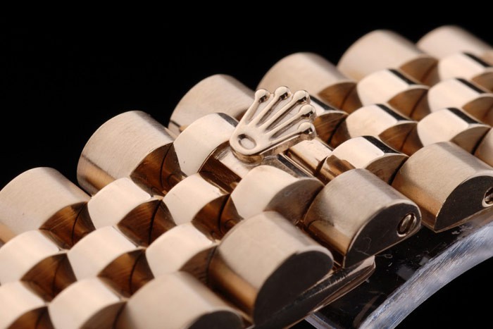 Bracelet: 18k gult guld guldpläterade rostfritt stål länk armband med Rolex gravyr dold spänne visar Rolex logo