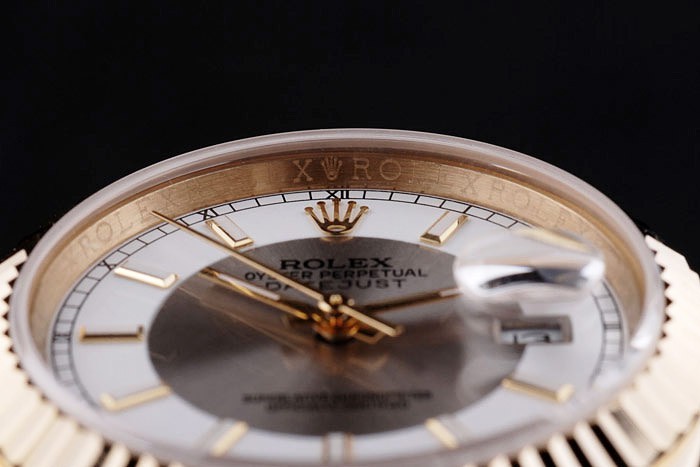 Crown: 18k gult guld stål cutwork krona med Rolex logo