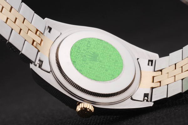 Back: Tryck in rostfritt stål tillbaka med grön Rolex klistermärke och markings